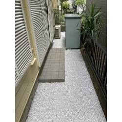 石灰砂利を敷く事で、雑草の生えにくい環境に、また明るくなり見た目も広々とした印象になりました。