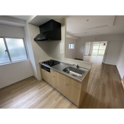 ビルトインコンロのキッチンに交換しました。 天板はエンボス仕上げが施されたステンレスなので、キズが目立ちにくく且つ耐久性に優れています。 外観もおしゃれな木目調になり、色味がまとまっているのですっきりとまとまった印象のお部屋になりました。
