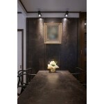 GRAFTEKT(グラフテクト)のキッチンは、セット製品でもレイアウトと設置位置を選べます。お施主様のキッチンは、壁に沿って取り付けるI型のレイアウトとバックセットの組み合わせを選びました。扉とワークトップのカラーバリエーションも豊富にあり、セラミックタイルのような質感と深みがある素材をチョイス。高機能メラミンで耐久性が高く、お手入れもしやすいのもメリットです。食洗器も新たに導入しました。 キッチンの重厚感に合わせて、壁の仕上げ材はタイルを採用。目地の色もタイルと同色にしています。スイッチやコンセントの位置もプランの中で綿密に計算し、不足がないようにしました。またスイッチは、「神保電器株式会社のNKシリーズ」に統一しています。
