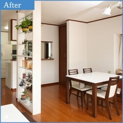 二世帯同居ということでお互いの家族が使いやすいプランニングを心がけました。 水まわりは、一部増築して配置を見直し、ダイニングキッチンは和室を一体化させ広々としたLDKにしました。ご家族の皆さまにも大変喜んでいただけました。