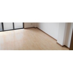 【施工後】 フローリングのような木目調のクッションフロアです。 フローリングよりも安価なため、リフォームしやすいことが特徴です。 ホワイト系で全体的に明るく見えます。