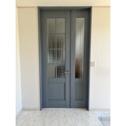 片開きドアを親子ドアへ交換しました。 大きな家具などの出し入れが容易になるサイズ 幅1200となりました。