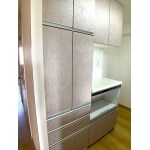 クロスとフローリングを貼り換えました。明るい雰囲気のリビングになりました。 カウンター下収納はA4の書類を大量に置きたいとのことで、サイズを合わせて造作しました。