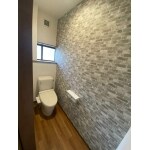 1階トイレは、アクセントクロスで仕上げました。 アクセントクロスは視覚的に空間を広く見せる効果があります。 2階トイレは、既存のトイレとタイルを撤去し タイル調のクロスで仕上げました。 1,2階トイレの床は水まわりに最適なクッションフロアになっております。 1,2階トイレのクロスが違う仕上げになったのもお客様と打ち合わせをしていき決まりました。