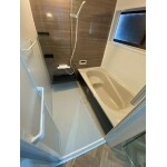 色は、ベーシックカラーに仕上げており落ち着きのあるかっこいい浴室へと完成しました! 茶色のパネル壁が良いアクセントカラーになっていてビジネスホテルのような浴室になっています。 この写真からでは、少し見にくいですが段差も無くなったのでつまずいて転ぶこと無く安心してお風呂に入れるので良かったです!