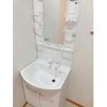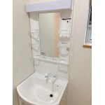 扉に鏡!?明るい洗面スペースに