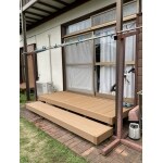 お手入も簡単な樹脂製のデッキをご提案させて頂きました、また、既存は階段部分が小さかったので、全面に設けさせて頂きました。