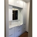 洗面台の上に収納を付けたい。取りやすくして欲しい。