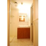 洗面化粧台を入れ替えました。収納力もアップして使い勝手の良い洗面空間に生まれ変わりました。ドアや床は南欧風をイメージしたナチュラルで温かみのあるデザイン。水廻りの壁紙等もすべて交換し、白色を基調とした清潔感のある明るい印象になりました。