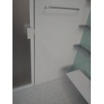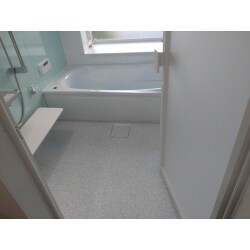 ドア枠を撤去し、浴室の高さを変えることにより、洗面所との段差も解消しました。 洗面所のクッションフロアも張り替えています。