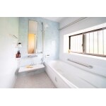 浴室、洗面・脱衣所も、水色をアクセントとして、明るく清潔感のある空間になるようプランしました。これまでタイル張りだった浴室は、システムバスへお取り替え。 断熱性の向上はもちろん、お掃除浴槽・床ワイパーなど、お掃除もラクにきれいを保つ機能が備わった新たな浴室で、これからのバスタイムを今まで以上に気持ちよく、リラックスしてお過ごしいただけると思います。