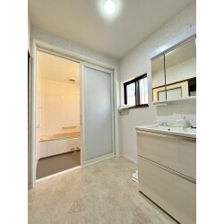 - 洗面化粧台の配置を変え、広々とした脱衣場になりました。