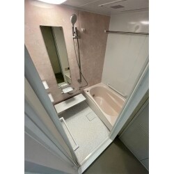 ユニットバスが古くタイルの目地がはがれてきた為、お風呂をリフォームしました。 ピンクの浴槽とピンクのアクセントパネルでとても柔らかい雰囲気になりました。