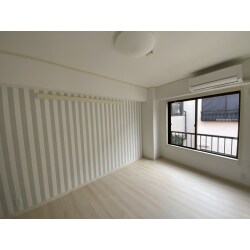 キッチンと洋室を仕切っていた壁を解体し、ワンルームのお部屋に。アクセント壁のクロスは、大家さんに決めていただきました。明るくおしゃれな印象のワンルームマンションになりました。
