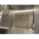 グレーを基調とし、アクセントでベージュのタイルやライン照明を選択。ワンランク上のラグジュアリーな空間を実現いたしました。