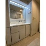 ミックスウッドホワイトの洗面化粧台が、明るく爽やかな洗面空間。