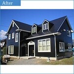 黒い屋根と外壁に窓廻りや軒先・ケラバを白くアクセントをつけたのが、上手く建物を引き締めていてよかったです。