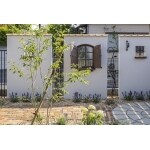 陽だまりの温度が感じられる素敵なお庭になりました。お庭の雰囲気をつくってくれる白い壁『ディーズガーデンパティオルポ』は、小窓やフラワーハンガーフックなど飾りもついてよりかわいらしくお好みでカスタムでき、アイアン調の飾りと相性ばっちりです。柔らかな印象の木目調タイルテラスと日よけのオーニングのスペースは、オーニングを開けると空が見え、解放感的な空間となり日向ぼっこをするにも最適です。お庭を周回できる床面はレトロなレンガと自然石サークルを採用。角が取れ色むらのあるレンガはぐっと深みのある空間にしてくれます。植物との相性もばっちりです。季節の変化を感じながらのんびり眺めて使っていただけますように。