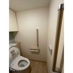 身体的ご負担をなるべくかけずにお使いいただけるトイレをご提案させていただきました。トイレ本体は凹凸を極限まで抑えたデザインであり、大便器後ろにもすきまがないものにてお掃除の際のご負担軽減に繋げさせていただきました。入室の際にも、お体の負担が少なくなるように入り口に手すりをお取り付け致しました。