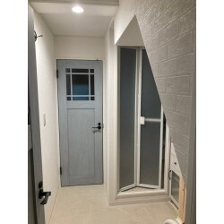 ユニットバスをリフォームし、扉の位置を変え、廊下の壁を一部取り払うことで、洗面室の広さもさらに広がります。 扉もお好みに合わせ、光が感じれる窓付きのものに変えられると、より解放感があると思います。