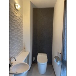 便座交換・クロス張替え・備品交換をさせていただきました。床の張替えもご希望されておりましたが、ご予算内で納めるために今回は保留に。お客様にクリーニングしていただくことで明るい空間になりました。 見えづらいですが、向かって左の壁にエコカラットも施工してあります。