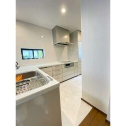 L型キッチンからL形キッチンへ新しく交換していきます。L型キッチンの上部に吊戸棚がありましたが、収納力が高い反面、圧迫感があり「キッチンをすっきりさせたい」とのご要望で取り外します。 このお家は、物がたくさんあり、お客様自身お片付けが苦手という事で当社の整理収納アドバイザーをつけて工事していきます。