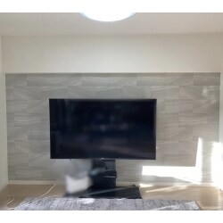 一部をアクセントクロス施工しました。一番目に入るテレビの後ろの壁をアクセントにすることで、イメージも変わりました。
