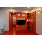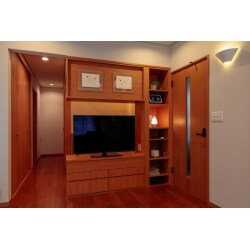 お話をお伺いすると、キッチンからテレビが見えて、テレビボードが邪魔にならない場所に設置が可能であれば、壁掛けテレビにすることへのこだわりは少ないようでした。 リビングに隣接している二畳ほどの和室は、荷物置き状態でデッドスペースとなっているご様子。 そこで今回の工事で和室を改修し、リビングにあるウォーターサーバー、ワインセラーを置くスペースにすることをご提案しました。 テレビボードを和室の寸法に合わせて造作することで、無駄なスペースもできません。