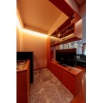 もともと和室だったコーナーの壁は重厚感あるタイル張りでしたので、そのまま活かすことにしました。 壁のタイルとの調和を考慮し、床にはフロアタイルを採用しています。