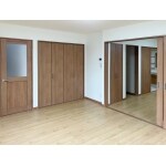 床、壁、天井を改修し建具を交換しました。奥に洋室のドアが見えます。