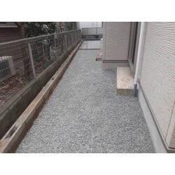 整地後、防草シートを敷設をして、敷砂利を敷いたことで、雑草が生えてこないようにし、快適な空間になりました。 ※別角度