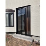 外壁は完成イメージを持っていただくためにCGを作成しました。納得のいくまで何度もお打ち合わせをさせていただき、アクセントを入れたカッコイイ外壁の仕上がりとなりました。また、玄関ドアは採風のとれるドアを採用いただき、新しく風除室も設置いたしました。これで冬場でも玄関先は暖かい空間となりました。