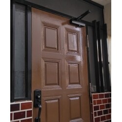 老朽化した玄関ドアのリフォームを希望されておりご相談いただきました。お家が海の近くにあるため、木のドアだと早く劣化してしまうとのことでドアの交換工事も併せてご検討されていました。
