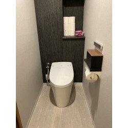 タンクが無いことで高級感が生まれます 壁も落ち着いた色にしてさらに気持ちのいい空間になりました。