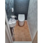 玄関近くにトイレを設け、ご訪問された方にとっても使い易いおしゃれなインテリアのトイレになりました。