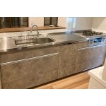 ニッチや猫ちゃんのエサ台も設置した、おしゃれなキッチン