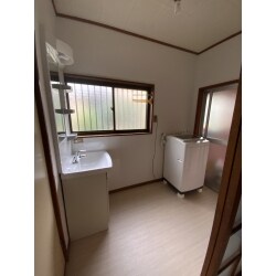 見違えるほどきれいになりました。 明るめのクッションフロアで洗面所自体明るくなったような印象を受けます。 築30年以上のお家ですが、根太から補強しているのでこれからも長く住み続けることができるようになりました。