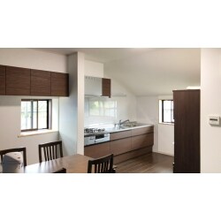 勾配天井を生かし、使いやすいキッチンダイニングのプランをご提案致しました。明るさを取るため、既存窓の大きさを変えず交換し、さらに1カ所窓を増設致しました。