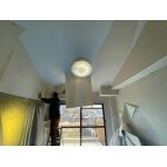 経年劣化が気になっていたリビングのクロス。 エアコン周辺が特に経年劣化でひどく剝れていました。クロスは、年月が過ぎると収縮するので剝れたりするものです。クロスを張り替えてリビングを広々とした素敵な空間にして行きます。