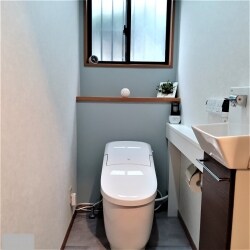 ・家族構成の変化応じたリフォームをしたい。 ・省エネ達成率100%基準を達成しているトイレを希望。 ・タンク付きトイレからタンクレスへ変更希望。 ・トイレ内に手洗いが欲しい。 ・床、クロスも一新し、雰囲気を変えたい。 とのご要望でした。