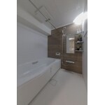 浴室のサイズも広くなり、ウォールナットのアクセントパネルがご自宅のインテリアと調和。お子様とご一緒に入浴も楽しめる落ち着いた浴室空間となりました。