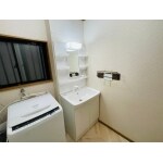 洗面化粧台の入れ替え工事のご要望でしたので、リクシルの洗面化粧台オフトをご提案させていただきました。 陶器製大型洗面器で、洗顔・洗面はもちろん、つけ置き洗いなどにも便利です。水栓まわりに設けた約5度の傾斜が水滴を残りにくくし、綺麗に保てます。 床のクッションフロアーも張替えさせていただきました。