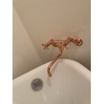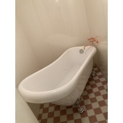 壁パネルはキレイでしたので床の上貼りと浴槽の入れ替え、水栓を可愛くすることをご提案。目指したのはヨーロッパのホテルテイストです。