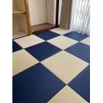 ブルーとアイボリーの琉球畳が明るくポップでおしゃれです。琉球サイズはデザイン性が高いため畳を取り替えるだけでこんなにおしゃれになります。
