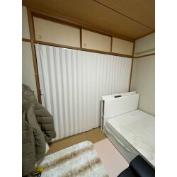 アコーディオンカーテンの取付を行い、自由自在に収納ができるようになりました。 襖に比べ適宜調節が可能ですので自由自在にご使用いただけます。