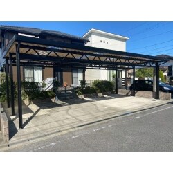 車4台分、途中に柱無しで設置できるカーポートはありませんので、大きな梁で補強ができるセッパンガレージにてプランさせて頂きました。これなら車4台分の大空間が確保できます。