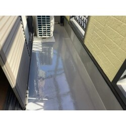 市販の塗料を絶縁し、上から防水材料を2度塗り、さらにトップコートを重ね工事完成です。ツヤのあるピカピカのバルコニーになりました。