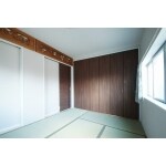 欄間で以前の雰囲気も残しつつ、押し入れよりも使い勝手の良いクローゼットをつけた新しい和室を一部屋つくる、境界に隣室のクローゼットを配置してお互いのプライバシーも大切にできる間取りをご提案。