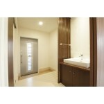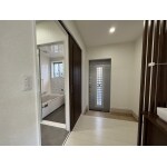 採風袖がある玄関ドアをおすすめし、防犯的にも安心していただけるようご提案。限られた面積の有効活用もできる玄関への手洗い設置をご提案。