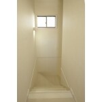 同じかね折れ階段ですが、腰壁や蹴込み板や段鼻への滑り止め、扉付きの収納スペースもつけて安全面も機能性も見た目も格段にアップしました。